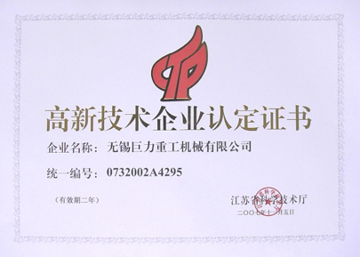 巨力重工首次通過高新技術(shù)企業(yè)認(rèn)定