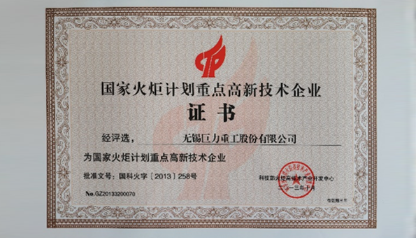 巨力重工被認(rèn)定為國家火炬計劃重點(diǎn)高新技術(shù)企業(yè)
